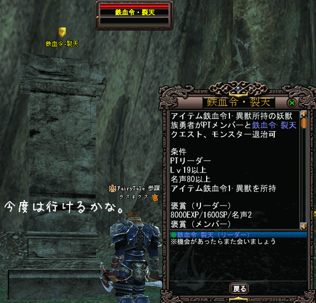 裂天までの道のりは1、2度Mobに絡まれて危ない場面もありましたがw